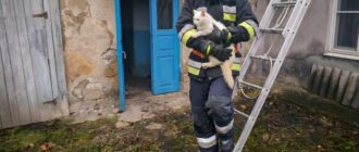 На Тернопільщині працівники ДСНС із пожежі врятували кота За інформацією: Суспільне Тернопіль. Рятувальник зняв кота з даху будинку. ДСНС області У Заліщиках Новини Тернополя