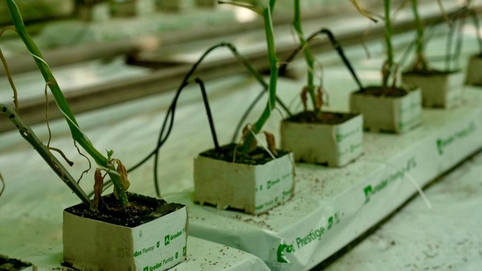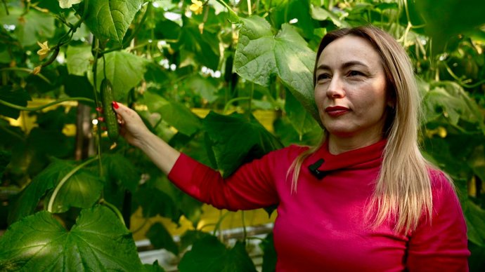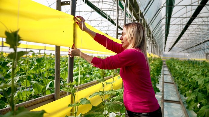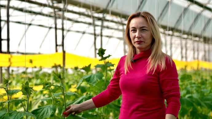 "Ми використовуємо біометод — виявляємо шкідників за допомогою липучок і за допомогою спеціальних ентомофагів, — це комашки, яких ми заселяємо, і вони з’їдають усіх наших шкідливих комах, які є в теплиці. Зокрема трипс, білокрилок, павутинного кліща. Це дуже велика перевага у вирощуванні рослин, тому що ми їх не кропимо, люди споживають екологічно чистий продукт".