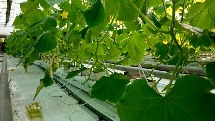 Це гібридДтриманий шляхом схрещування генетично різних форм або поєднання різних технологій., довгий гладкий огірок, і також корнішонДрібний, зазвичай 3–8 см завдовжки, хрусткий огірок, який збирають невдовзі після цвітіння.. Всі ці гібриди ми вирощуємо на гідропоніці.. Є зародкова комірка або кубик, у нього кладемо насінину, вирощуємо у розсадному відділенні, потім бачимо перші сходи. А потім садимо у мінеральну вату і так працюємо далі з огірком. Від посіву до першого плодоношення рослина дозріває за 60 днів", — сказала Оксана Колесник.