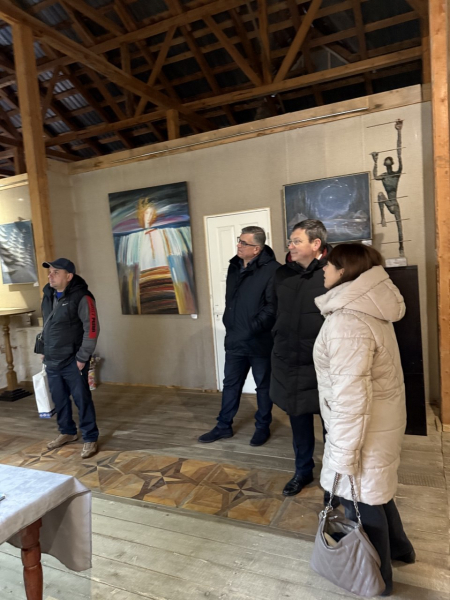 Цього разу до замку завітали ректор ТНПУ Богдан Буяк та проректор Ігор Гевко. Гостей ознайомили з мистецькими та імерсивними локаціями, які за останні два роки стали новою частиною простору замку. Зокрема, вони оглянули виставкові зали, де експонуються роботи заслуженого художника України Олега Шупляка.