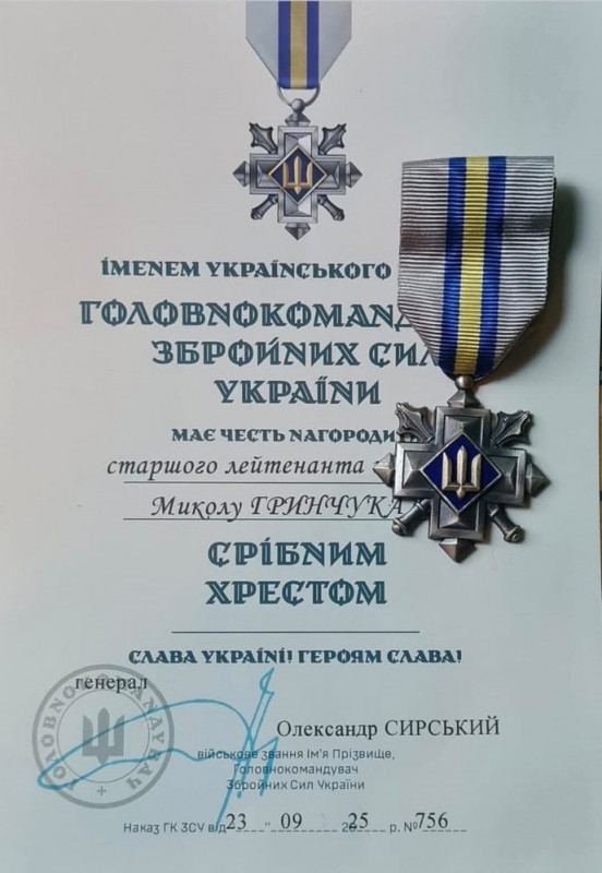Миколу Гринчука нагородили “Срібним хрестом”. Fb/Микола Гринчук