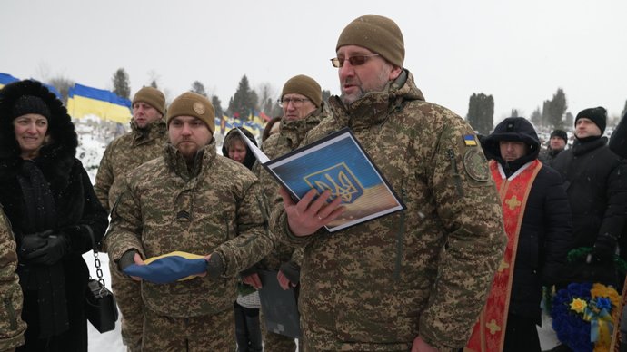 У Тернополі рідні, друзі та побратими попрощалися із загиблим військовослужбовцем Андрієм Слободяном. Чоловік служив у Національній гвардії України. Загинув від влучання російського дрона 31 грудня 2025 року. Чоловікові було 44 роки.