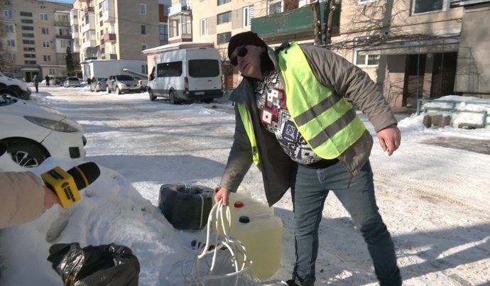 "В нас давно є велика проблема з водою. Дуже якісь аварії на мережі, а тепер, коли нема світла, то взагалі люди жаліються. Колонки і котли не запалюються, на верхні поверхи взагалі вода не доходить. Всі йдуть до тої колонки-качалки і тепер вона рятує, можна сказати, пів "Кемпінгу", бо дуже багато людей зі всіх довколишніх будинків ходять до однієї і тієїж колонки-качалки. І вже після роботи чи вранці тут така черга по воду".