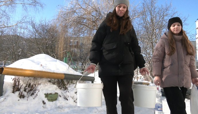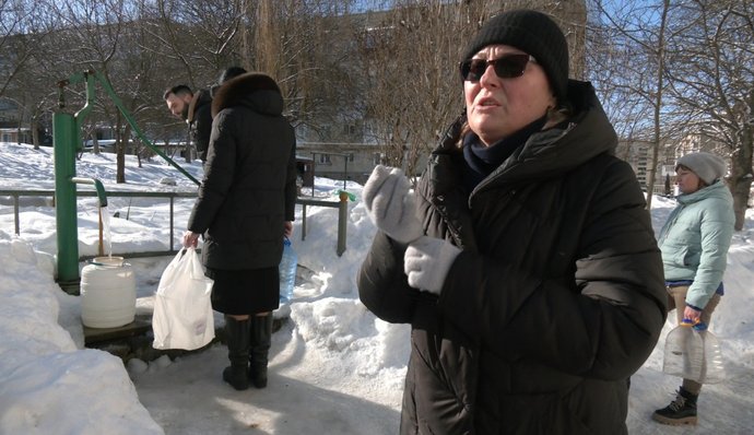 "Ми сидимо без води, без тепла і без світла. Світло подають чотири чи три години на добу. Як тільки вода закінчується, йдемо набираємо, бо треба помитися, посуд помити. Нам вже обіцяли, що буде вода, що поставлять генератор, накачає воду, але нічого немає", — сказала Тетяна.