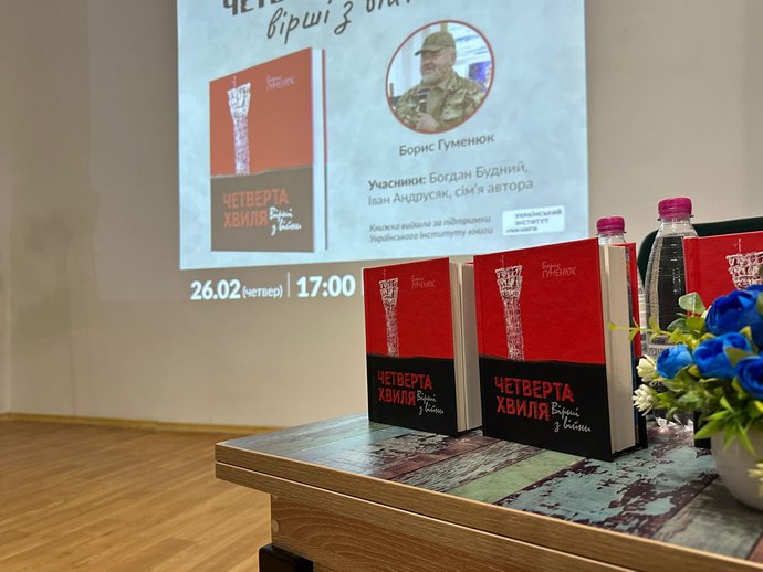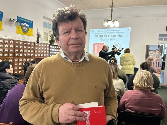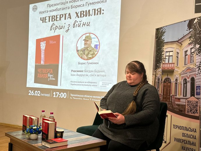 У Тернопільській обласній універсальній науковій бібліотеці презентували книжку "Четверта хвиля: вірші з війни". Її автор — військовослужбовець Борис Гуменюк. У 2014 році він пішов добровольцем в АТО. Служив там близько двох років, потім демобілізувався. Коли почалося повномаштабне вторгнення пішов у військо знову. Служив в окремій президентській бригаді та був піхотинцем. З грудня 2022 року вважається зниклим безвісти.