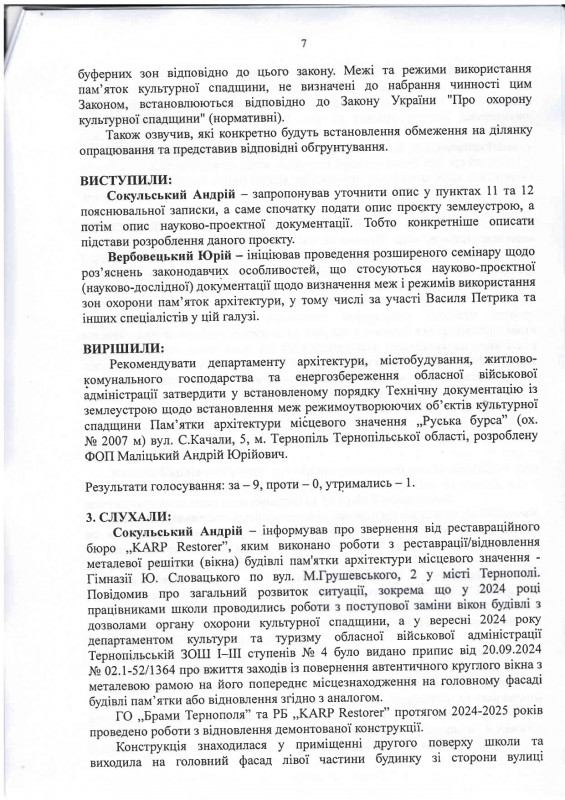 "Консультативною радою не було передбачено конкретно, хто має робити цю документацію, а ідеально щоб це була власне тернопільська школа, її представник, як балансоутримувач приміщення і громадська організація "Брами Тернопілля", як ініціатори і як ті, хто допомагають повернути на місце те, що було демонтовано".