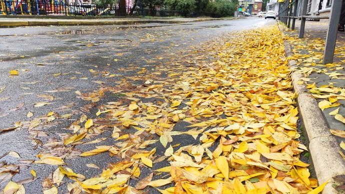 Опале листя на вулиці в Тернополі. Суспільне Тернопіль
