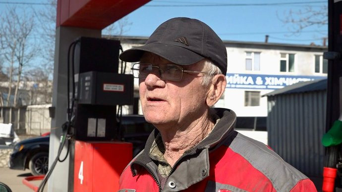 "Я не рахую, скільки людей купує пальне, але я на ногах постійно. Останнім часом ціна піднялася, то трошки менше покупців, сядеш трохи, відпочинеш, щоб ноги не боліли. Та загалом пальне люди беруть. Купують і по 40, і по 20 літрів, як кому по грошах виходить. До нас приїжджають, бо трошки ціна тут дешевша", — сказав Ярослав Венгер.
