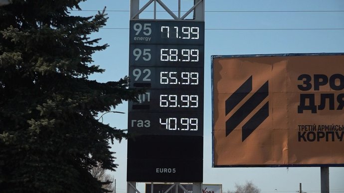 Борис Луків — працівник місцевої автозаправки. Він розповів, що 95 бензин тут коштує 70 гривень 99 копійок за літр, його преміальна версія — на три гривні дорожча. Дизель — 75 гривень 99 копійок.
