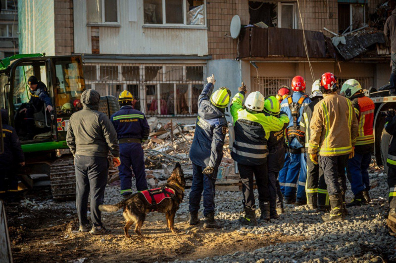 Як тільки ми приступили, було перше позначення, де потім рятувальники виявили тіло загиблої жінки, на жаль. У подальшому ми продовжували обшук по поверхах, до нас приєдналися розрахунки з Хмельницької області та з Київської області, які всі дні допомагали в пошуку та ідентифікації. Останній день був одним із найскладніших".
