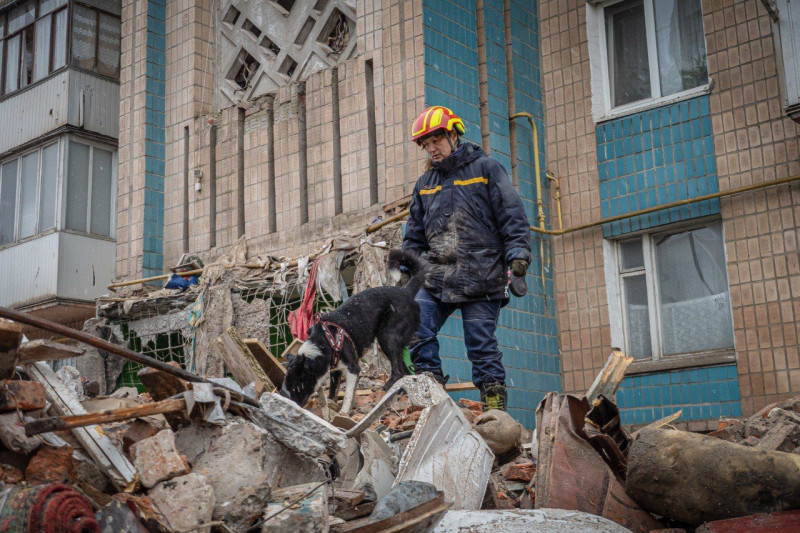 Шукати людей під завалами багатоповерхівки було складно, розповідає Катерина. Окрім Фіони, там працювали й собаки з інших областей.