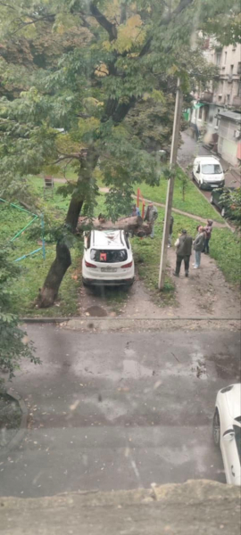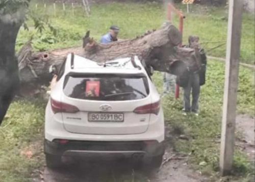 За даними свідків події, дерево впало на легковий автомобіль, припаркований на зеленій зоні в одному із дворів Тернополя.