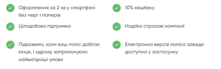 - миттєве отримання електронного поліса на e-mail або у застосунку;