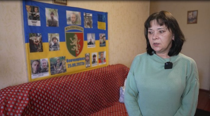 Жінка показує кейс з документами та запитами до органів, які займаються пошуком зниклих безвісти бійців, а також переписку з їхніми рідними. Розповідає, що досі не знає, де її син: