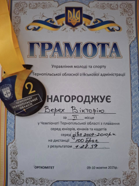 9-10 жовтня відбулися змагання з плавання серед юніорів, юнаків та кадетів, на яких сестри Вікторія та Аліна Верех здобули 4 золоті та 2 срібні медалі.