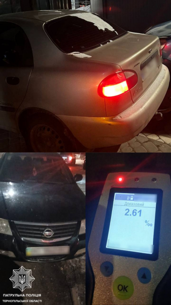“Нещодавно патрульні виявили двох водіїв, які керували транспортними засобами у стані сп’яніння. Першого керманича зупинили за порушення ПДР на автомобілі Nissan. Під час спілкування поліцейські помітили у водія ознаки алкогольного сп’яніння. Огляд провели на місці зупинки за допомогою приладу Драгер. Результат — 2,61 проміле. Іншого водія, який керував автомобілем Daewoo Lanos, патрульні також зупинили за порушення ПДР. У кермувальника виявили ознаки наркотичного сп’яніння, однак чоловік відмовився від проходження огляду в медичному закладі”, – йдеться у дописі патрульної поліції.