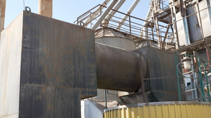 "Це вихровий теплогенератор. Під тиском сюди потрапляє полова, завихряється і горить при температурі приблизно 900 градусів. Димові гази, які є гази в процесі горіння, заходять в теплообмінник і звідти чисте, нагріте повітря поступає в сушарку і сушить зерно. Ми не сушимо зерно димовими газами, а чистимо повітрям. Бо димові гази залишили б тяжкі елементи, метали, які не корисні для споживання. Цей теплогенератор модульний, ідея його розробки була в тому, що його можна переміщати. За потреби його можна вивезти до фермера в поле. Його ставили на платформу і переміщали будь-куди".