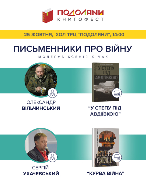 Окрім книжкових новинок, відвідувачів чекає зустріч із письменниками-ветеранами Олександром Вільчинським та Сергієм Ухачевським у межах події «Письменники про війну».