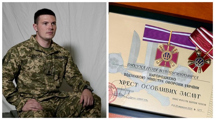 "Герой України Ігор Дикун удостоєний Хреста особливих заслуг від Міністерство оборони України", — написали на сторінці ТЦК у соцмережі.