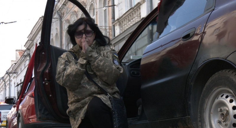 Христина Довгалюк під час супроводу полеглого Суспільне Тернопіль