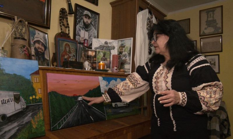 Мати полеглого захисника з Тернополя Христина Довгалюк пише картини, щоб донатити на евакуацію полеглих. Два роки тому жінка долучилася до гуманітарного проєкту "На щиті", організованого благодійним фондом "Ангели добра".