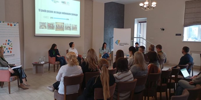 Одна зі спікерок — експертка з організації розвитку та співпраці з органами влади Ірина Полєтуха каже, за час повномасштабної війни збільшилася кількість програм фінансування ініціатив. За її словами, важливо знати, куди звернутися по допомогу в реалізації задуму: