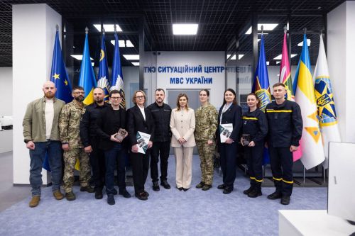 Міністр внутрішніх справ України Ігор Клименко повідомив у своєму Telegram-каналі про презентацію роботи Служби 112, Ситуаційного центру МВС і системи психологічної підтримки під час візиту Першої леді Олени Зеленської до підрозділів МВС.