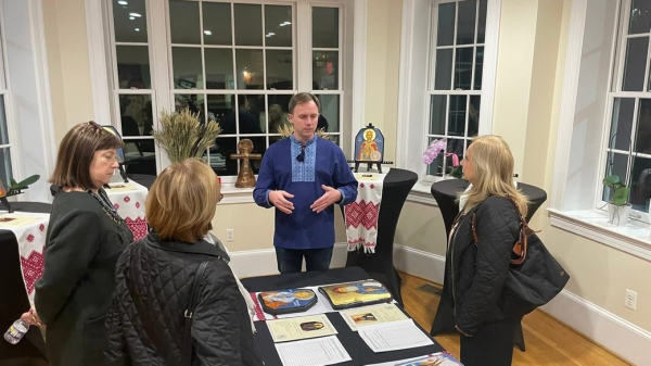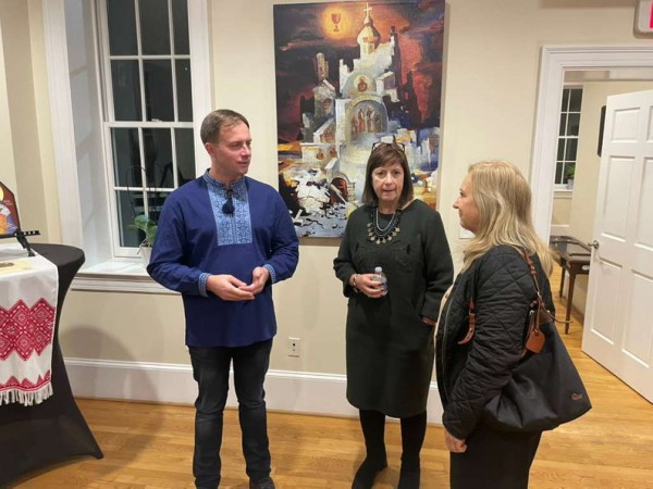Іконописець Андрій Охоцький презентував у Вашингтоні персональну виставку робіт, створених на використаних бронеплитах.