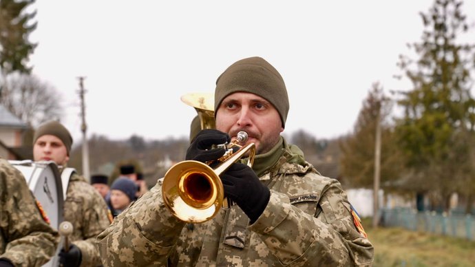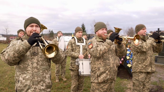 Військовий оркестр 44 артбригади супроводжує поховання бійців. Суспільне Тернопіль