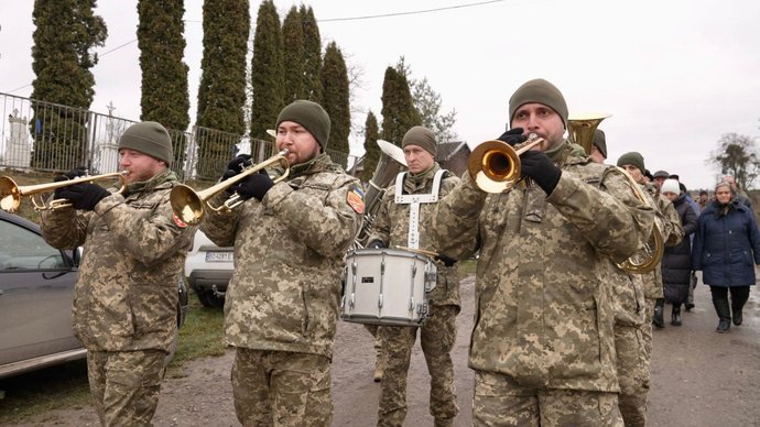 Дорогою з церкви до кладовища оркестранти грають чотири похоронні марші. Суспільне Тернопіль