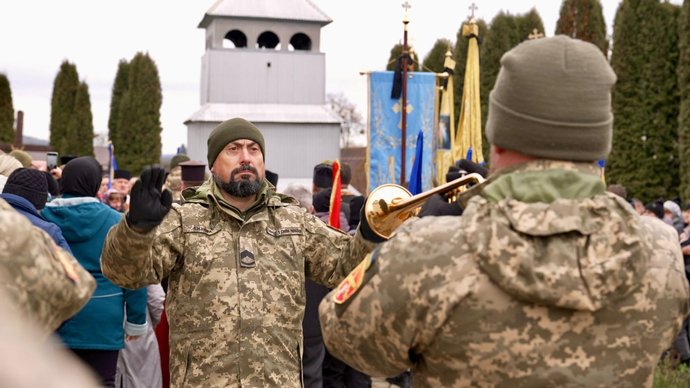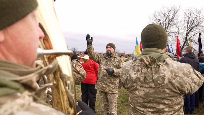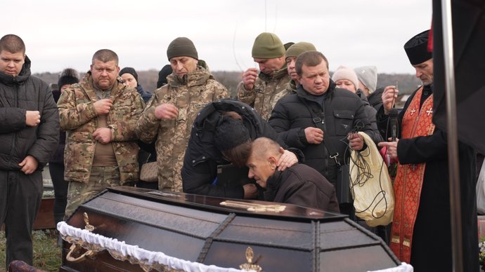 На кладовищі для бійця оркестр востаннє грає Державний Гімн України.
