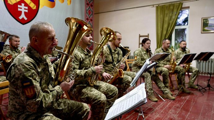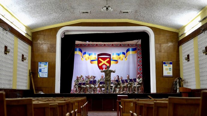 Диригент Тарас Когут розповів, оркестр 44-ої артилерійської бригади цього року відсвяткував десятиліття. У ньому грає 20 військовослужбовців, деякі з них мають бойовий досвід, як і сам Тарас. Чоловік у 2015 році отримав поранення під Дебальцевим. Там разом із побратимами воював пів року, 11 днів були в оточенні росіян.