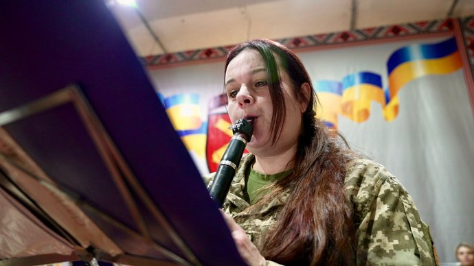 На кларнеті грає Ірина Козловець. Музикантка у війську з 1998 року.