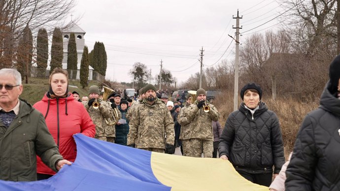 Під супровід військового оркестру бійця востаннє провели вулицями рідного села.