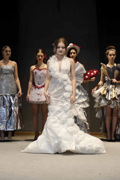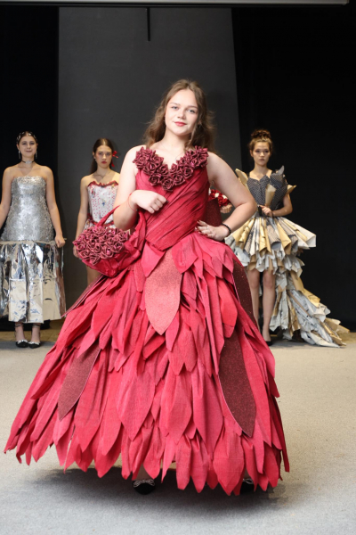 У Тернопільському університеті студенти представили колекцію одягу з перероблених побутових матеріалів.