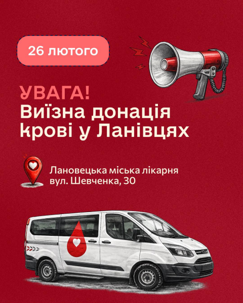 фото ілюстративне У четвер, 26 лютого, «бладмобіль» Тернопільського обласного центру служби крові буде у Ланівцях.