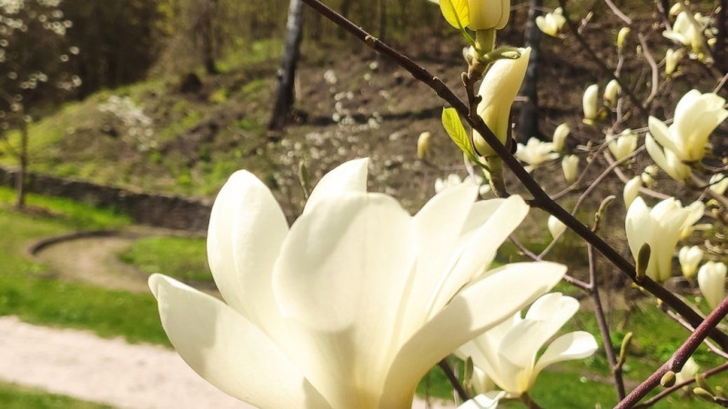 У Кременецькому ботанічному саду на Тернопільщині починають квітнути магнолії. Колекція цих квітів у саду налічує 12 видів і 3 гібридні форми.
