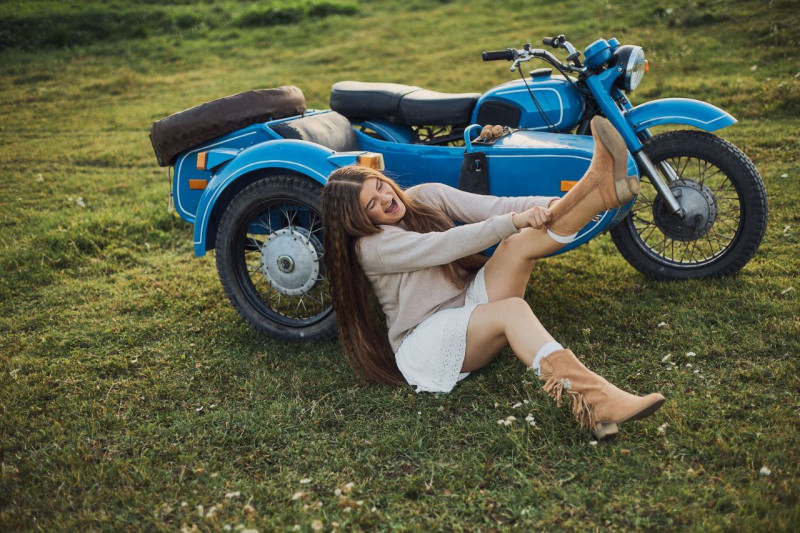 "На цьому мотоциклі "Kawasaki" колись їздив мій тато. І вже коли мені було 14 років, тато подумав: "Ну, вже все, час, бери, сідай, пробуй!". Як сьогодні пам'ятаю цей день, бо на коліні досі є шрам. Сам принцип їзди я розуміла, але таки його вага — понад 200 кілограмів — була занадто для мене 14-річної. Я різко загальмувала і впала. Плакала тоді, пам’ятаю, і тато вирішує продати цей мотоцикл. І він чотири чи три роки продавався, а я кожного разу молилася, щоб ніхто його не купив. Ще приходила до гаража і, коли батько не бачив, сідала на нього та говорила: "Ну чому ж я не можу тебе осідлати?". Але в один момент тато таки дав мені ще один шанс", — пригадує дівчина.