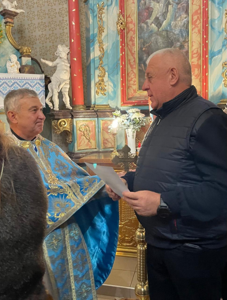 Після Божественної Літургії о. Зіновій Пасічник від імені правлячого архиєрея Бучацької єпархії УГКЦ владики Дмитра Григорака вручив грамоту від Церкви відомому аграрію та благодійнику Петру Гадзу.
