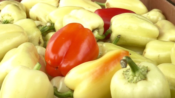 На центральному ринку Тернополя триває сезон солодкого перцю. Ціни — від 25 до 60 гривень за кілограм. Овочі привозять із Закарпаття, Заліщиків та Борщева, розповідають продавчині.