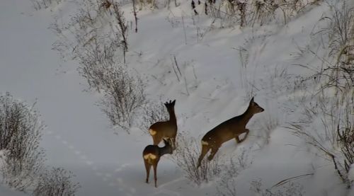 На опублікованих світлинах та відео з об’єктивів БпЛА Волинського загону можна помітити справжніх господарів прикордоння.Тварини неквапливо пересуваються глибоким снігом, залишаючи довгі ланцюжки слідів. Деякі особини спокійно відпочивають на снігових «лежанках», насолоджуючись зимовою тишею лісів.