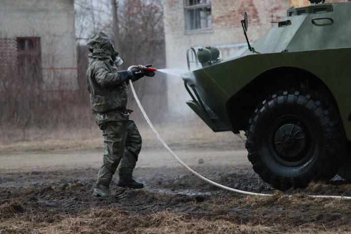 Радіаційне зараження в зоні локалізоване, умовно кажучи, плямами. Тобто є місця, де радіаційний фон понад норму, але переважно зона більш-менш чиста і порівняно безпечна для тимчасового перебування. Ми взаємодіємо з підрозділами РХБ розвідки. Вони моніторять обстановку, проводять заміри, чи техніка не заражена, який фон тощо. Якщо фон вище норми, то ми (РХБ захист – ред.) проводимо деконтамінацію – обробляємо техніку і за потреби особовий склад.