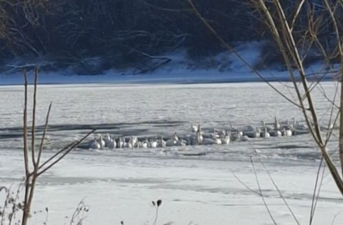 Фото: Галина Федьків Жителі Золотопотіцької громади зафіксували появу великої кількості диких лебедів на річці, які через низьку температуру та замерзання водойми можуть опинитися у пастці.