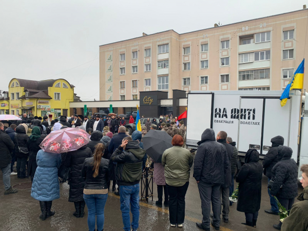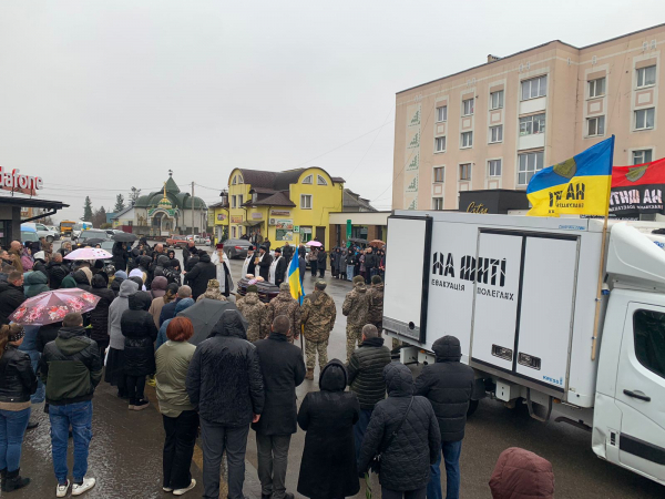 «Незважаючи на дощ і холод, наші жителі прийшли віддати останню шану мужньому Захиснику. Люди стояли навколішки, схиливши голови в молитві та мовчанні, зустрічаючи кортеж із тілом воїна. Ця хвилина єднання у спільному горі стала свідченням глибокої поваги до подвигу Василя, який віддав своє життя за мирне небо над Україною», — зазначили у раді.