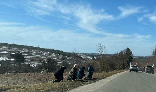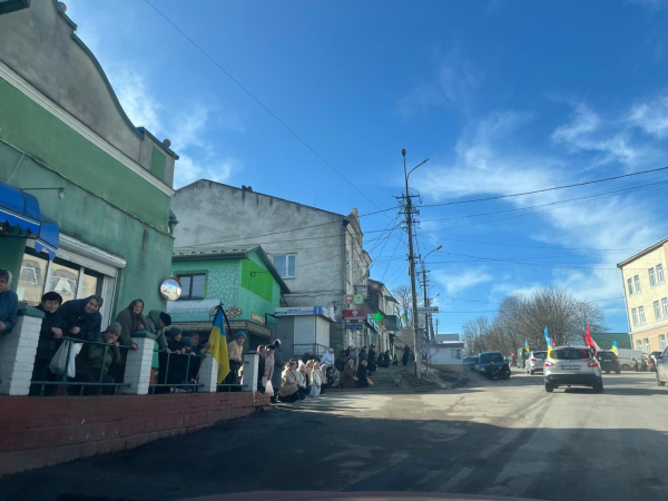 Мешканці громади виходили вздовж дороги, щоб провести воїна та віддати йому останню шану.