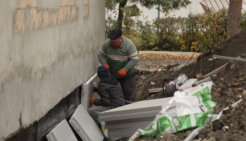 "Десять сантиметрів пінопласту заміняє практично півтори цеглини будови. Робимо і теплоізоляцію, й гідроізоляцію. Фундаменти не були гідроізольовані. Тут нічого не було, колишня будова. Ми як розкопували, навіть не бачили шматочка смоли. Практично, цементні блоки поставлені і все. І воно тягнуло вологу, волога переходила в середину, а тепер буде сухо. Вентиляції в нас пороблені. Робимо рекупіратори. Це для того, щоб не відкривалися вікна. Колись відкривали, щоб провітрити, а зараз все буде автоматично".