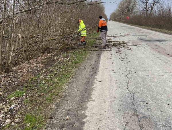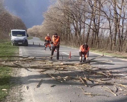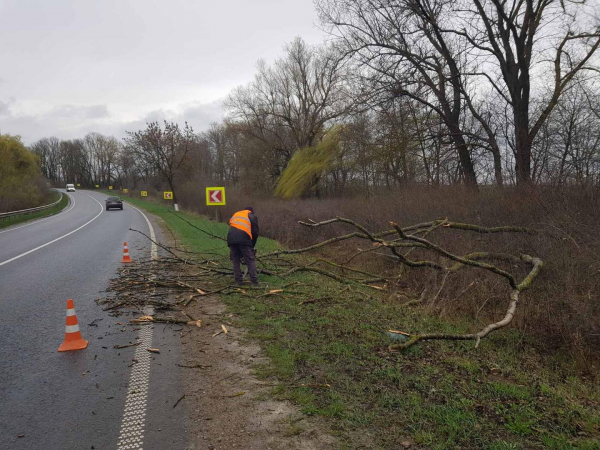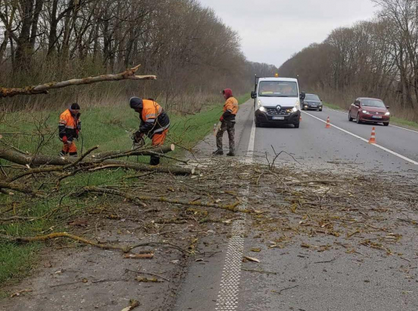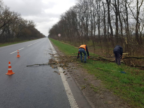 Після кількох днів сильного вітру дорожники також розчищали проїзну частину від повалених дерев і гілля.