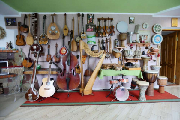 У двох залах закладу “Камертон” зібрано понад 200 інструментів із 90 країн світу — духові, струнні, ударні та клавішні.