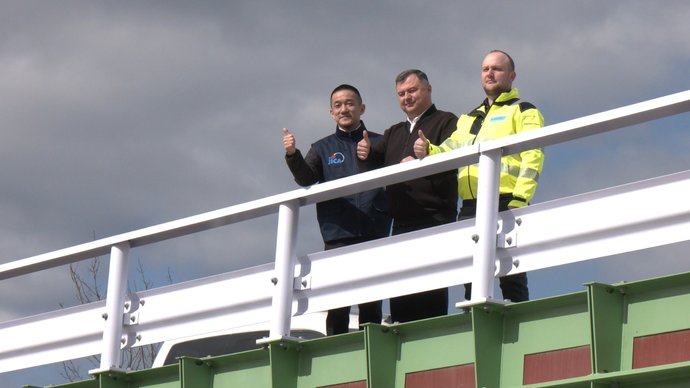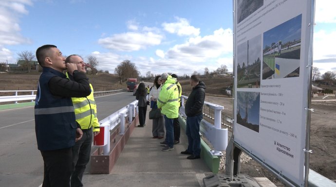 Оглянути роботу приїхав керівник представництва Японського агентства в Україні Осаму Хатторі. Він повідомив, що всього Україні передали конструкцій загальною довжиною 720 метрів за "Програмою екстреного відновлення".