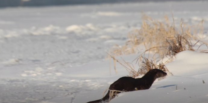 Видра на засніженому березі. НПП “Дністровський каньйон”